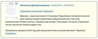 Обязательно приедем в 2016 году. Для отдыха всей семьи лучший пансионат "Афалина".