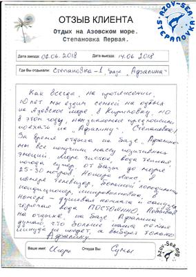 Как всегда, на протяжении 10 лет мы ездим семьей на отдых на Азовское море, в Кирилловку, но в этом году, нам знакомые предложили поехать на "Афалину", Степановка-1.