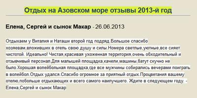 Спасибо за отдых на Азовском море. Пансионат Семейный.