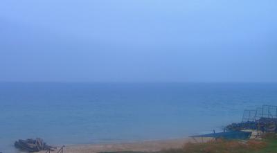 Туман и лёгкая волна на побережье Азовского моря. Много облаков и пасмурная погода весь день.