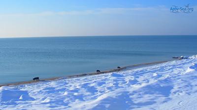 22 Марта 2018. Ночью выпал снег. 3 собаки бегают по пляжу. Кирилловка. Вебкамера на Азовском море. #stepanovka-webcam-2018