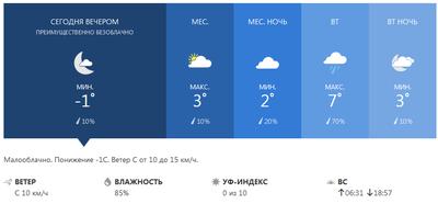 Ветер Ю 13 км/ч Влажность 81% Точка росы -2° Давление 1020.0 мбар Видимость 14.5 км ===