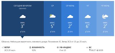 Ветер ЗЮЗ 23 км/ч Влажность 84% Точка росы 4° Давление 1007.5 мбар Видимость 16.1 км