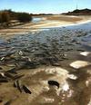 Сотни пеленгасов застряли между Азовским морем и Молочным Лиманом в промоине!