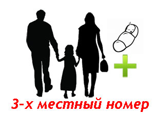 Просим обратить внимание на значок вместимости номера! Мы заботимся о комфорте и удобстве наших гостей и поэтому ограничиваем максимальное количество людей, которые могут проживать в номере. В данном номере может проживать семья из 3-х человек + ребёнок возрастом до 2-х лет. (Проживание 2-х летнего ребёнка не оплачивается!). Обязательно сообщите нашим менеджерам, если количество людей в Вашей семье превышает указанное количество. Мы постараемся подобрать для Вас более подходящий номер.