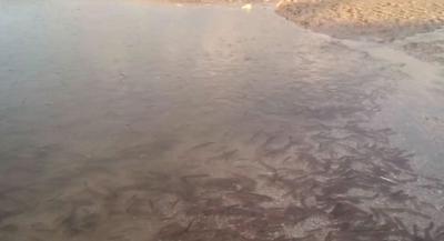 Подул очень сильный восточный выбор и море само пробило в последнее время образовавшуюся песчаную пробку. Появился небольшой канал шириной не более 3-х метров и небольшой глубиной. Рыба которую ранее запустили в лиман массово поплыла в образовавшийся "канальчик", но потом при перемене направления ветра канал оказался ловушкой. Сотни пеленгасов оказались в очень узком пространстве.