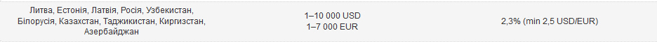 Переводы можно отправить с помощью наличных денег или кредитной карты. Валюта переводов: Доллары США, ЕВРО.