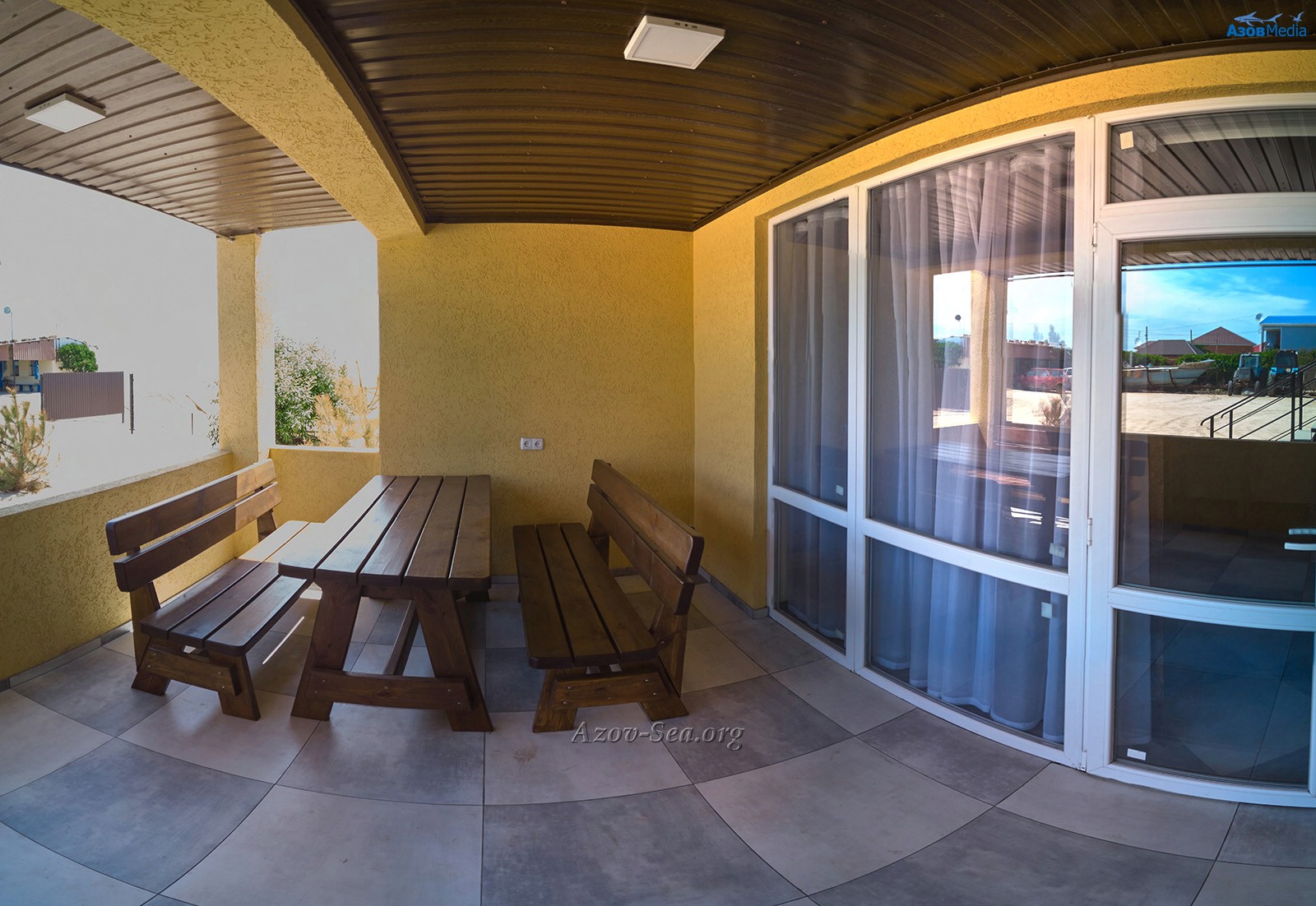 Двухкомнатный "люкс" номер для четырёх, пяти и даже шести человек. Номер расположен на первом этаже здания. С террасы открывается отличный вид на море и пляж. Есть доступ к бесплатному Wi-Fi интернету.