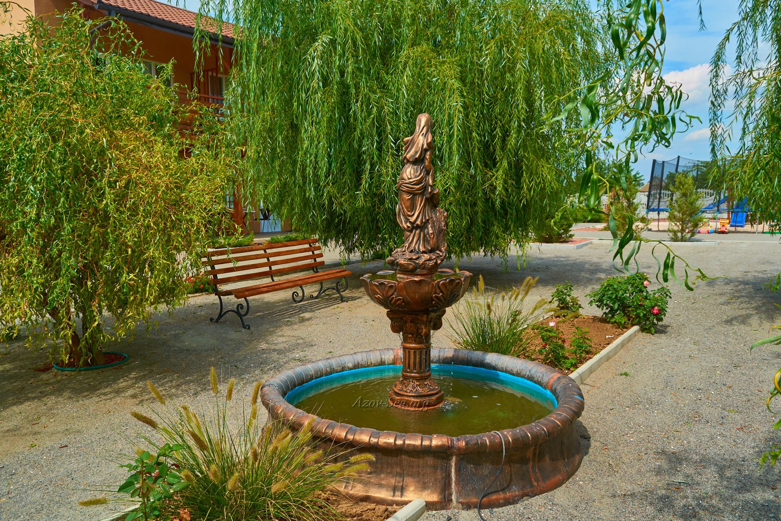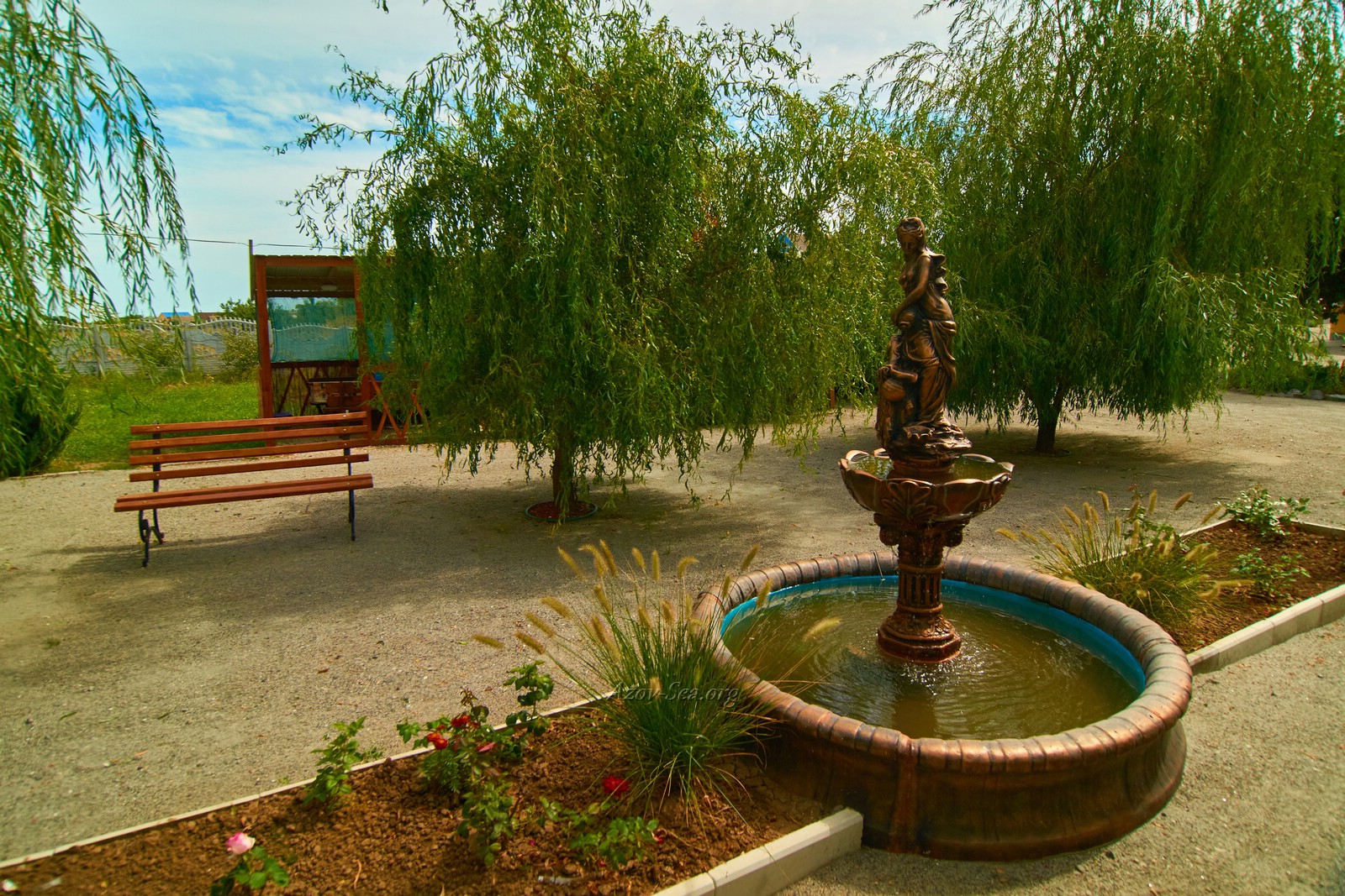 Гостевой дом имеет закрытую обширную озеленённую территорию и ориентирован на тихий, семейный отдых. По всей территории высажены ивы и молодые хвойные насаждения. На случай дождя дорожки выложены плиткой.