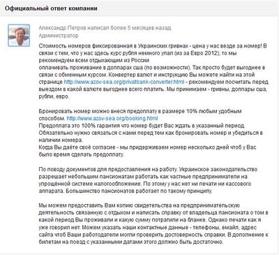 По поводу документов для предоставления на работу. Украинское законодательство разрешает небольшим пансионатам работать как частные предприниматели на упрощённой системе налогообложение. По этому у нас нет ни печати ни кассового аппарата. Большинство пансионатов работает по такому принципу.