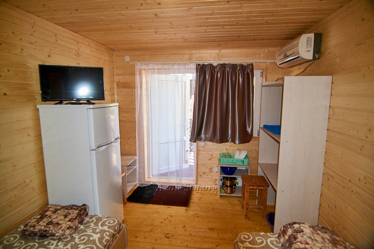 У входа в номер на просторной террасе есть деревянный столик со стульями.Готовить еду необходимо на общей кухне.