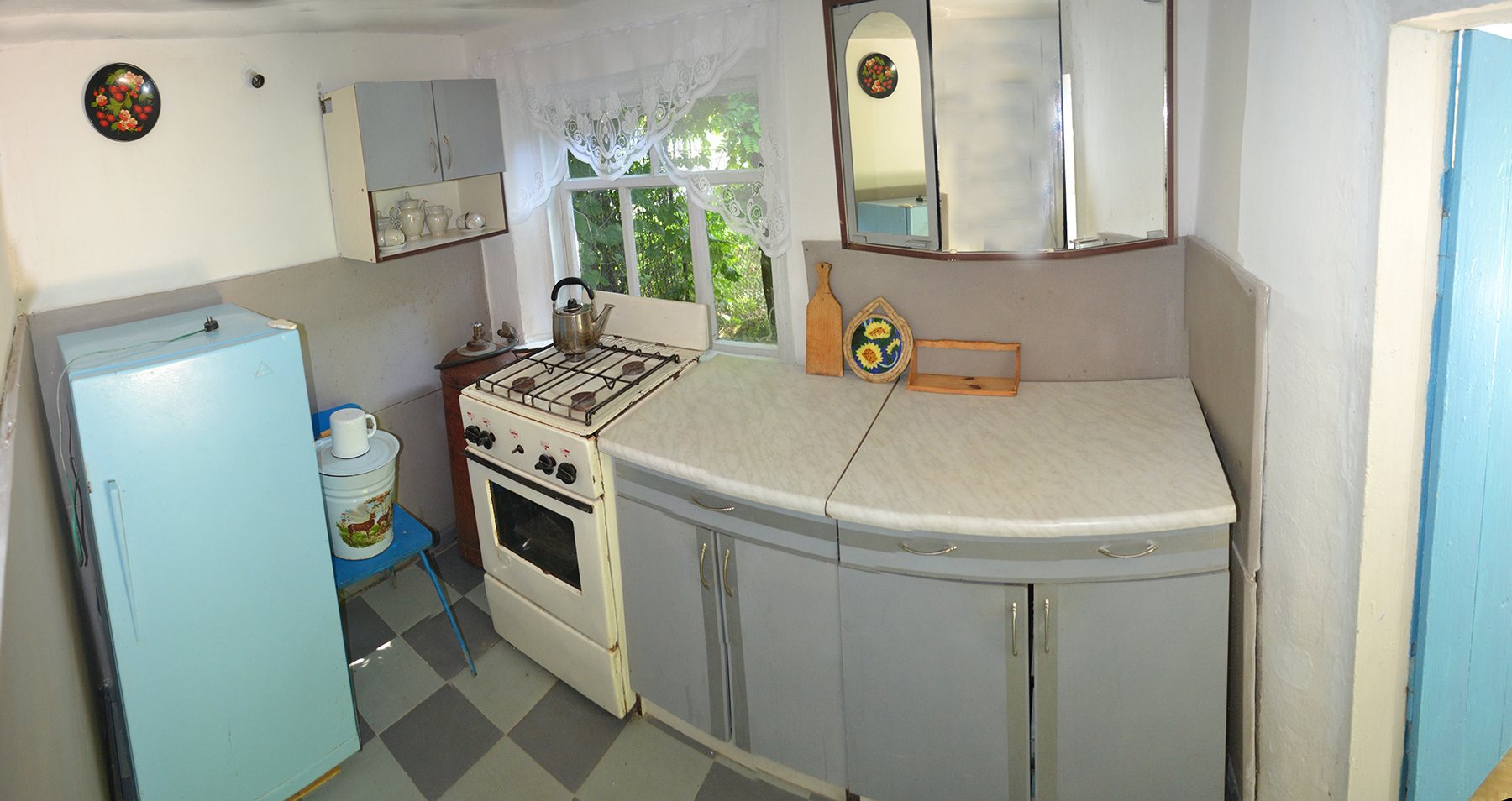 Вам доступно: Кухня общая на 2 номера (5 и 6) с кастрюлями и необходимой посудой. Коридорчик. Мангал, удобный навес и столиков и стульев в затенённом зеленью дворике.