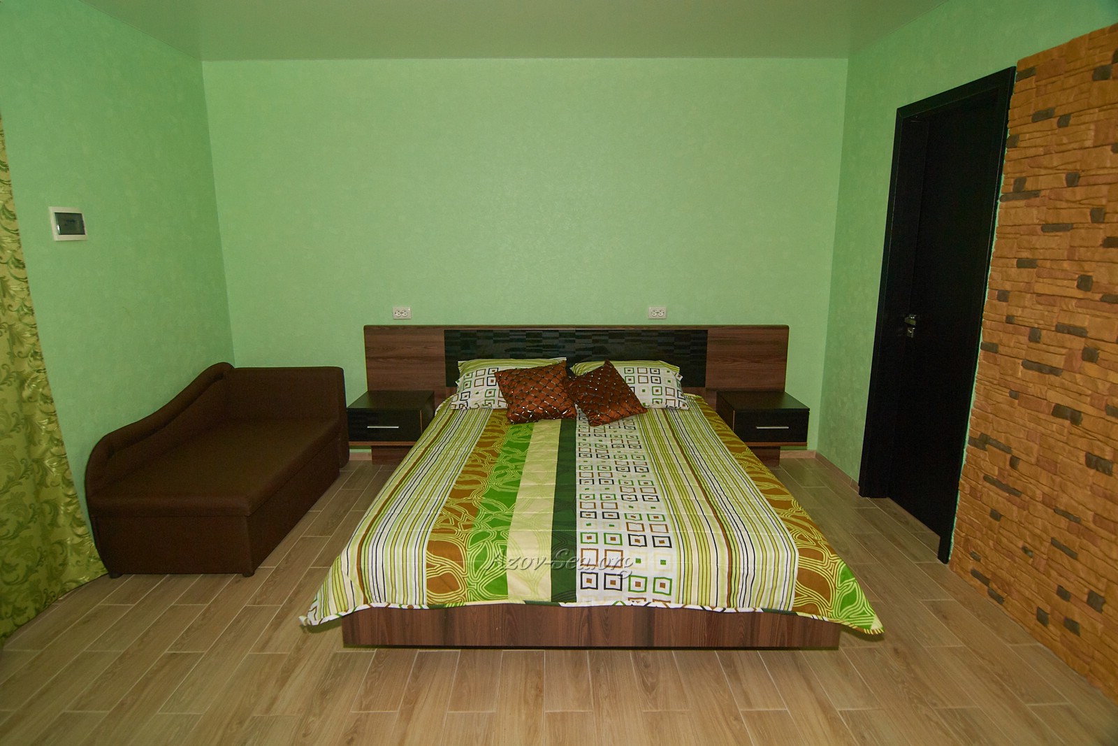 Первая комната: В первой просторной комнате расположена большая двуспальная кровать и раскладной диван. У кровати журнальный столик. Большой шкаф-купе для хранения Ваших вещей. На стене размещён LCD телевизор и сплит-система. Для хранения продуктов большой двухкамерный бесшумный холодильник. Есть сушилка для вещей. Пластиковые окна и двери. На окнах теневые занавески .