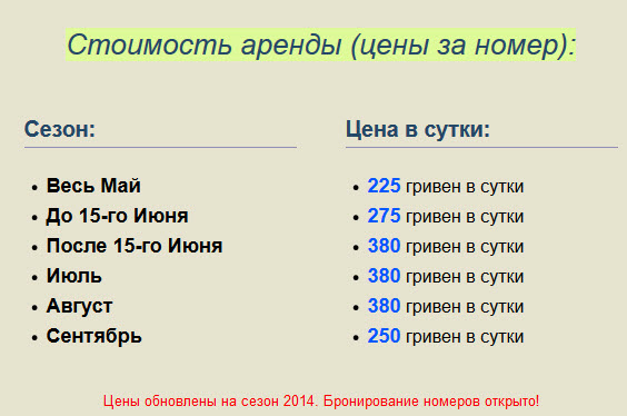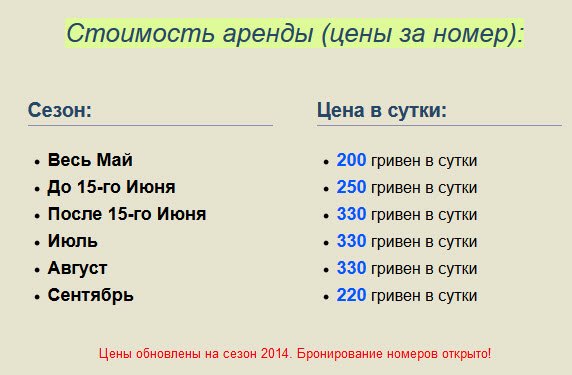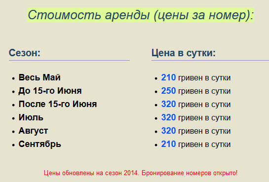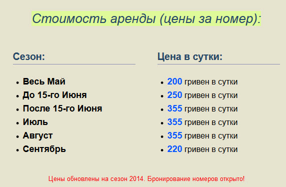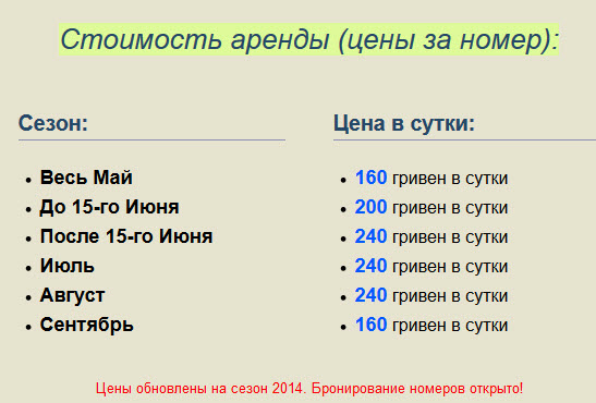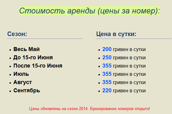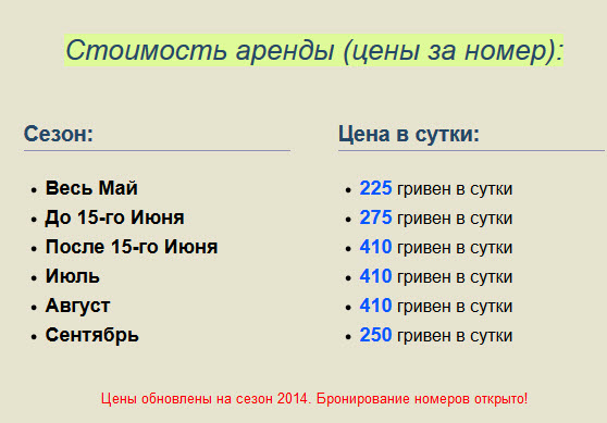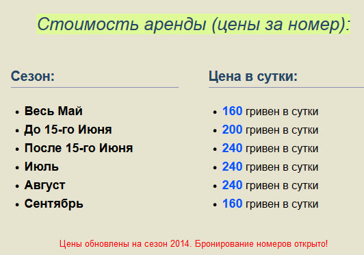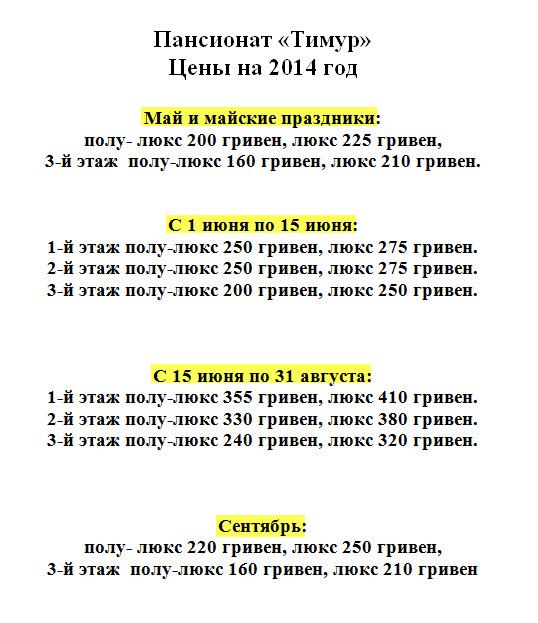 Уважаемые друзья. На этой странице Вы посмотреть обновлённые цены на сезон 2014 в Пансионате "Тимур". Узнай почём теперь отдых на Азовском море.