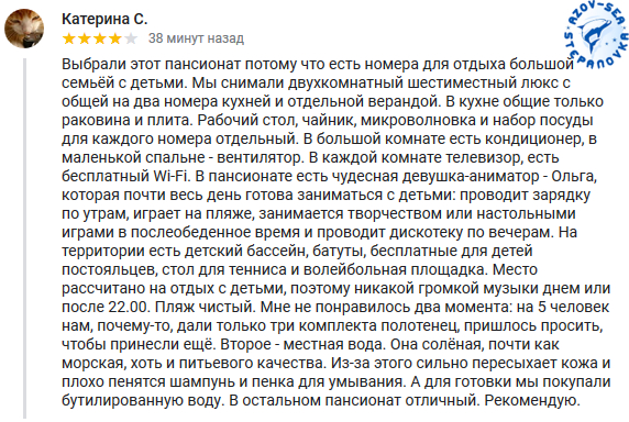 Ваш комментарий: Два дня назад вернулись из пансионата Семейный.