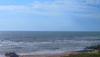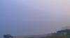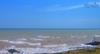 Туман и лёгкая волна на побережье Азовского моря. Много облаков и пасмурная погода весь день.
